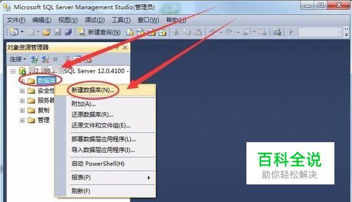 在“数据库”上右击,选择“新建数据库”。