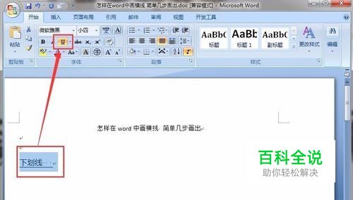 第一种word横线,也就是文字的下划线或者空白处的下划线,直接选中文字或者空格,然后点击下划线功能按钮就可以自动加上了,下划线的其它种可以参考下面这篇我以前写的经验。