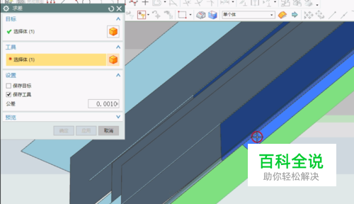 扩大得出的曲面,还需要进行裁剪,此时可通过UG软件布尔运算中的求差,把曲面与实体进行布尔;