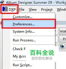 选择菜单栏的“DXP”选中“preferences”点击进入编辑窗口。如下图所示