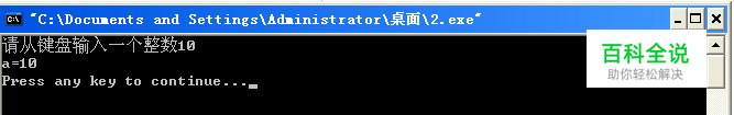 scanf("请从键盘输入一个整数%d",&a); //这样写,当你运行程序的时候"请从键盘输入一个整数"这几个字并不会输出到屏幕上,因为你是放在了scanf里,所以要想给变量a从键盘上赋值10,你就应从键盘上输入"请从键盘输入一个整数10"而不是直接输入10