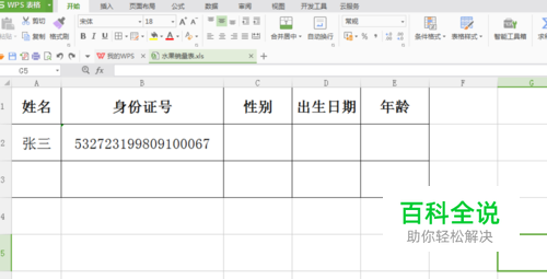 年龄:点击年龄下的单元格,在单元格中输入公式“=YEAR(TODAY())-MID(B2,7,4)”,B2表示身份证号码所在的单元格,然后点击回车键,年龄就自动显示了;