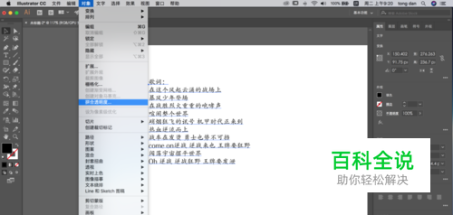 再进行步骤2的方法:菜单栏中选择对象——拼合透明度,点击确定按钮。取消编组。此时这个段落的文字就变成单个的了