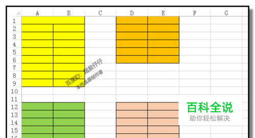 比如,下图中工作表,一共有4个表格; 现在需要把这四个表格一次性的设置为行高为20;列宽为10的大小。