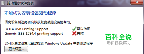 此打印机端口是usb的,首次插入电脑,电脑会自动安装相应的驱动程序,但是有些驱动程序不能安装成功,如图: