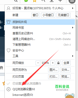 在菜单页面点击选择QQ浏览器设置