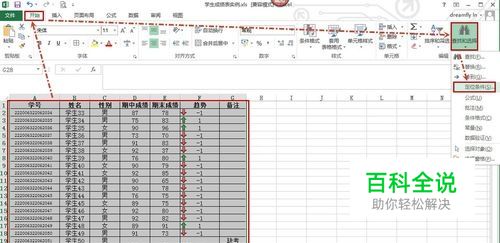 选中表格,然后单击“开始”选项卡的“查找和选中”(下三角),在弹出菜单中选择“定位条件”。