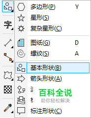 其实CDR中的多边形工具就是基础绘图工具,也叫预定义形状工具组。在多边形工具中包括多边形、星形、螺纹、基本形状、箭头形状等10个子工具,在这里集中了所有的基本图案。