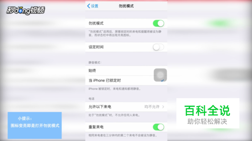 方法二:点击“设置”,点击“勿扰模式”,点亮“勿扰模式”光标即可。