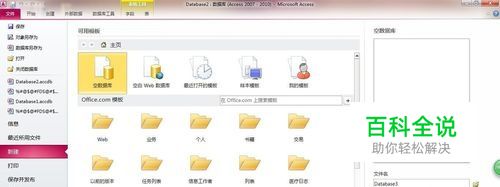 首先,从网络上下载安装access数据库。双击打开access数据库之后,就会看到如图所示的操作界面。双击界面中的“空数据库”,便可快速建立一个空白的数据库。