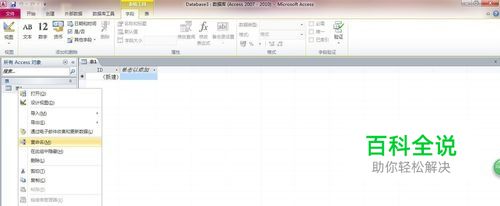 打开空白数据库之后,里面有一张数据表格,在操作界面左侧选中表格,右击可以给数据表进行命名。