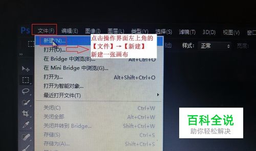 第二步,新建一个新的图层。具体方法是选择左上角的文件→新建。然后画布大小根据自己实际需要设定。