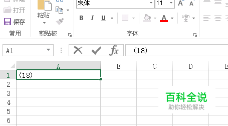 假设如图所示,我们在任意一个Excel的单元格内输入(18)这样的字眼,然后我们按回车键,这时候原本显示“(18)”的单元格突然变成了“-18”,也就是我们所说的情况。