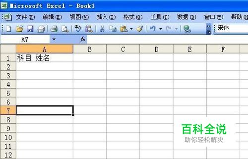 打开excel编辑文档,然后在一个单元格输入要编辑的数据,比如,科目 姓名