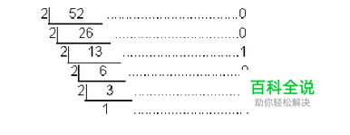52除以2得到的余数依次为:0、0、1、0、1、1,倒序排列,所以52对应的二进制数就是110100。 由于计算机内部表示数的字节单位都是定长的,以2的幂次展开,或者8位,或者16位,或者32位....。 于是,一个二进制数用计算机表示时,位数不足2的幂次时,高位上要补足若干个0。本文都以8位为例。那么: (52)10=(00110100)2