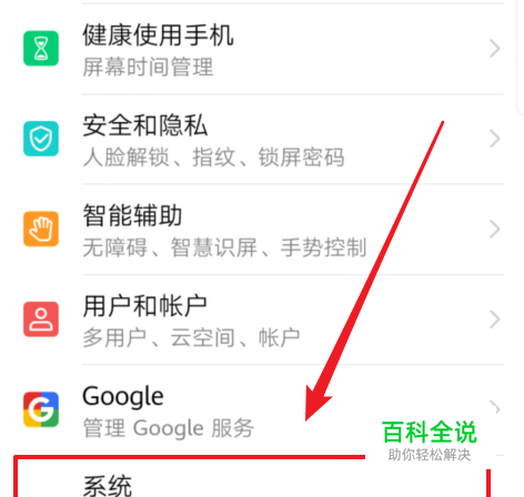 点击进入手机的设置以后,我们下滑界面,选择设置中的系统的选项进入。