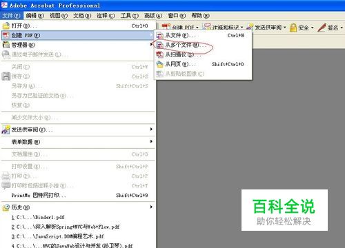 下载安装adobe acrobat 7.0,打开该软件,选择文件菜单中的创建pdf,从多个文件。