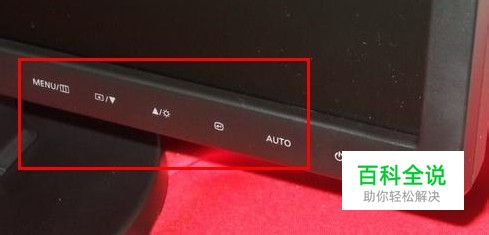 找到显示器的控制按键,不同显示器位置不同,大部分是在显示器底部,还有部分在顶部或者前面。我的显示器按键如下图
