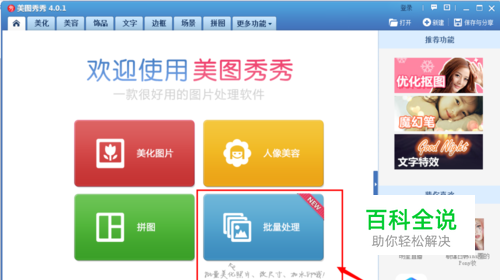 下载安装后,打开软件,选择“批量处理”,点击后会提示下载多一个批量处理插件,按提示操作就可以,如下图: