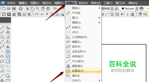 在caxa操作页面的菜单里找到绘图,然后找到剖面线。