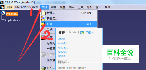 在弹出的窗口中选择后缀名为【.CATProduct】的文件打开。