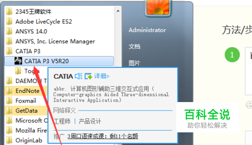 首先启动catia软件,在开始→所有程序→catia P3 ,打开程序。如图所示: