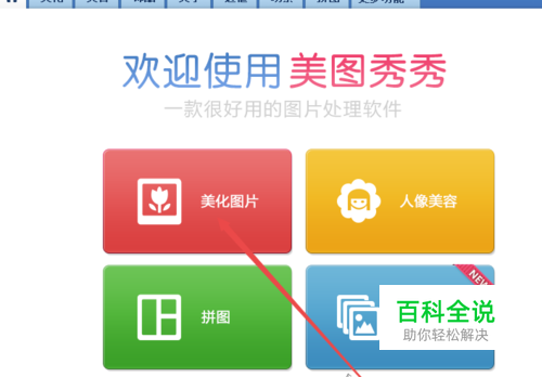 然后会来到了美图秀秀的欢迎首页页面点击 美化图片 选项。