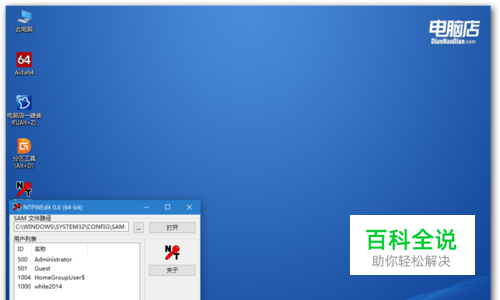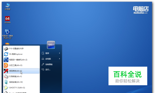 把用电脑店启动盘制作工具制作好的u盘插入电脑USB插口,重新启动并把计算机设置为U盘启动,然后进入电脑店win10pe系统,点击“密码修改”,如图所示: