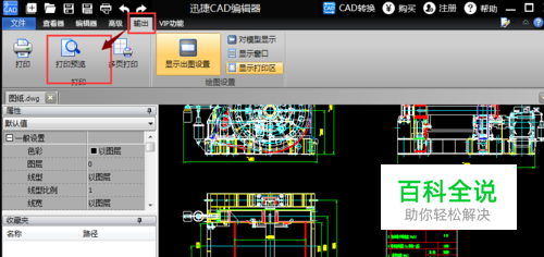 dwg文件就这样添加到我们的软件界面中了,在软件界面的左上角点击“输出”下的“打印预览”功能。