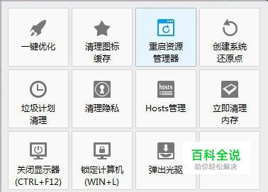 重启Explorer资源管理器,可以通过任务栏 --> 任务管理器 --> 进程 --> 找到进程Explorer.exe然后结束进程。然后,再在任务管理器中,文件 --> 新建运行 --> 输入Explorer重新启动。 如果感觉上述过程繁琐,也可以直接通过魔方电脑大师实现重启Explorer资源管理器。在任务栏魔方图标右键菜单,然后选择重启资源管理器,就OK啦。