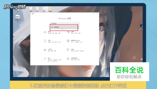 在查找设备搜索栏中搜索“控制面板”。