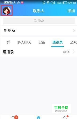登录手机QQ,点击左上角头象