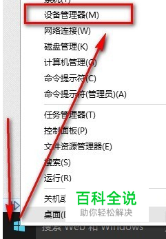 鼠标右键点击电脑左下角的图标,找到“设备管理器”选项