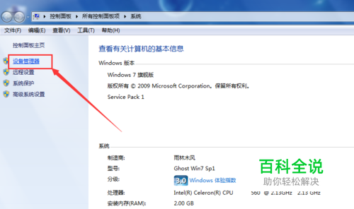 打开系统属性窗口后,点击左上角的“ 设备管理器”选项。