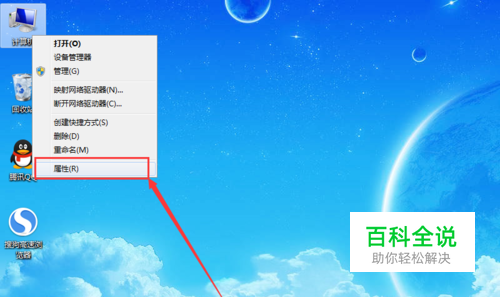 在桌面计算机图标上点击鼠标右键,然后选择“ 属性”选项。