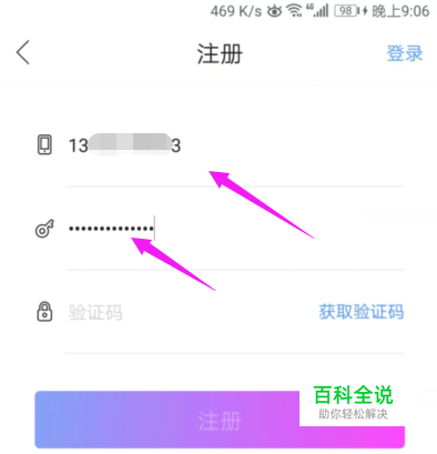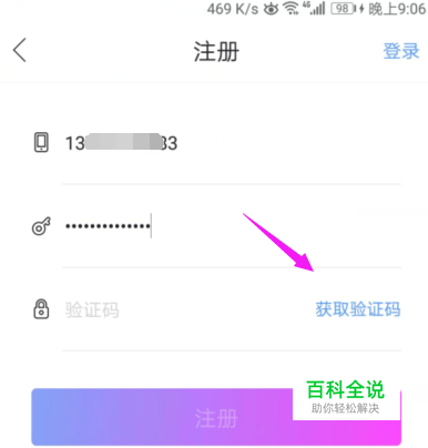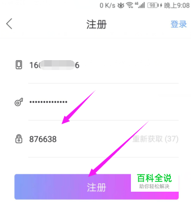 输入手机接收到的验证码,点下【注册】,即可,如图。