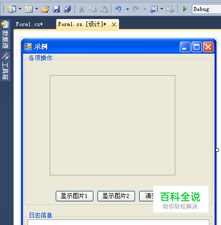 在【工具箱】中找到【pictureBox】控件,双击添加,改变控件大小为【250, 200】