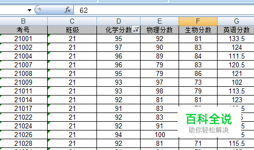 打开成绩表,首先把鼠标定位在数据区域的任意单元格上