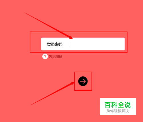 如图所示,按完回车键以后就会出现这样的红色界面,输入你的路由器登陆密码,再点击下小箭头就可以了,路由器的登录密码在路由器上面,仔细查看就可以了。