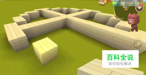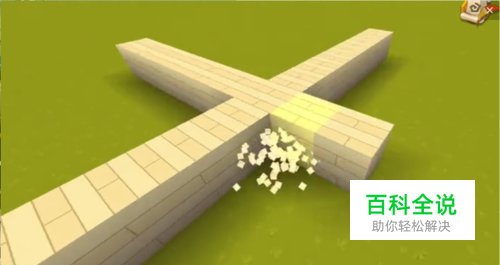 用基石钢板在地上搭建一个十字形,除了中间一块木板,前后左右再搭建6块。(搭的越长,房子面积就越大)