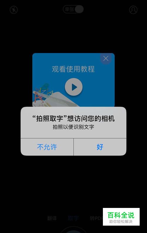 允许拍照的权限: 如果你初次用这种取字的软件,一进去你可能有各种权限要你去开,什么拍照的权限啊,访问网络的权限啊,你不给拍照的权限,照片都没法拍,更不用说取字拿字了。