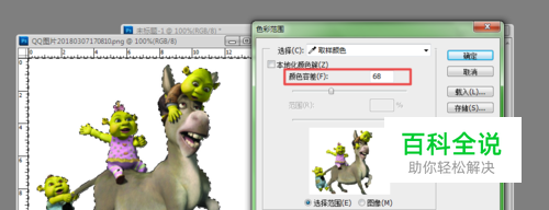选择合适的颜色容差,然后点击确定,使白色部分全被选中。