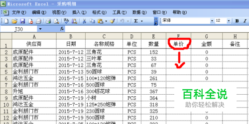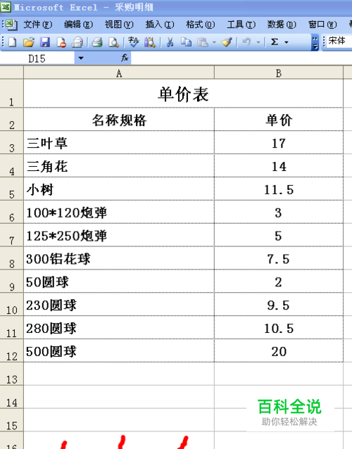 首先相关的内容资料要做到同一工作表里。比如,下图的一个工作表中有”单价表“、”采购明细“等工作表标签。