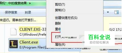 等待片刻,下面会出现“Client.exe”字样并且熟悉的图标,我们在上面单击右键,选择“打开文件位置”