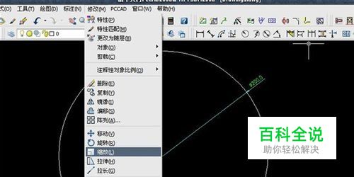 在菜单中找到“修改”,下拉找到“缩放”,如图所示。