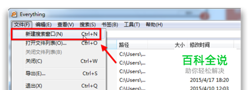 打开everything工具,点击 菜单---文件---新建搜素窗口,如图