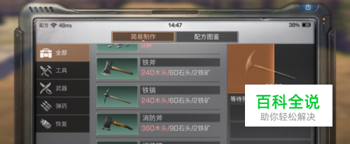 进入到配方的选项,选择简易制作选项,然后选择组装镐选项,点击后可以看到右侧所需要的制作材料。