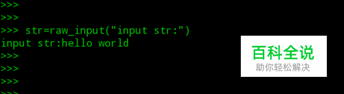 比如要获取键盘输入,直接编写如下代码即可。 str=raw_input("input str:") 后面的“input str:"是输入提示语,如下图所示。