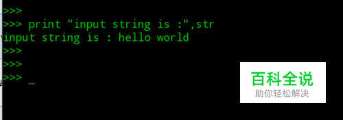 上图我们输入一个hello world的字符串,这时候就可以直接使用str变量来代替输入的字符串了,比如我们要打印字符串。 print "input string is:" ,str