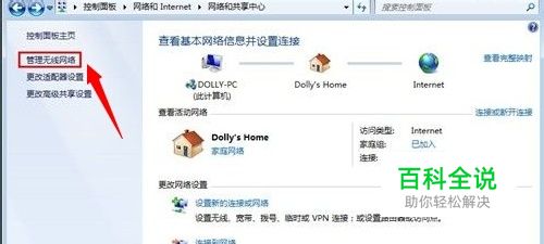 打开控制面板,进入"网络和internet"选项,点击“管理无线网络”。